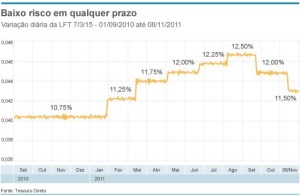 For to base my conclusion, I was showing with the daily variation of LFT with maturity in 03/07/2015, from september/2010 until november/2011. Note that each meeting of Copom the baseline of daily profitability of title varies, in line with the new basic rate of interest.