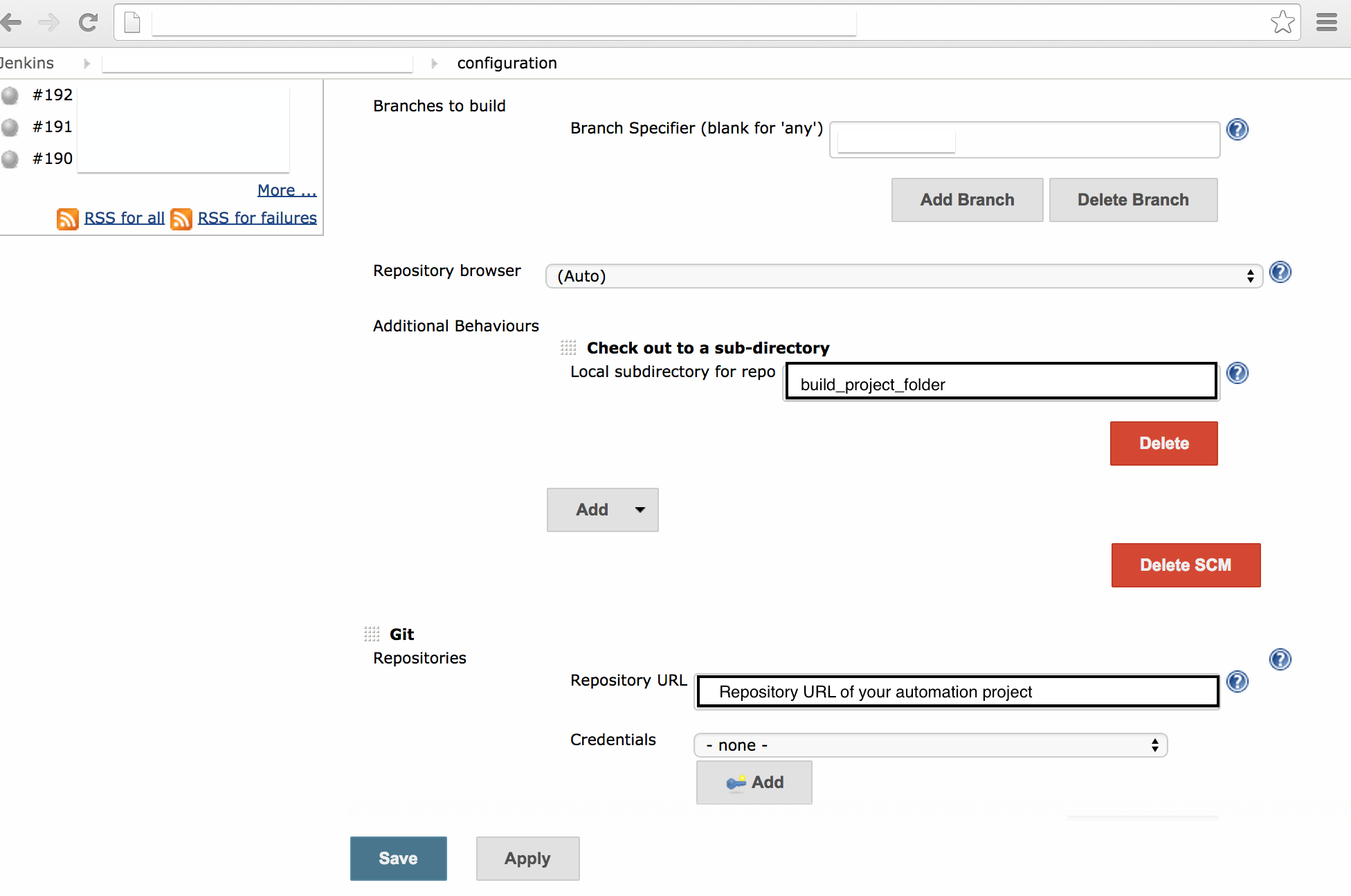 Fourth – Choose the branch of this SCM – calabash automation and the repository folder.