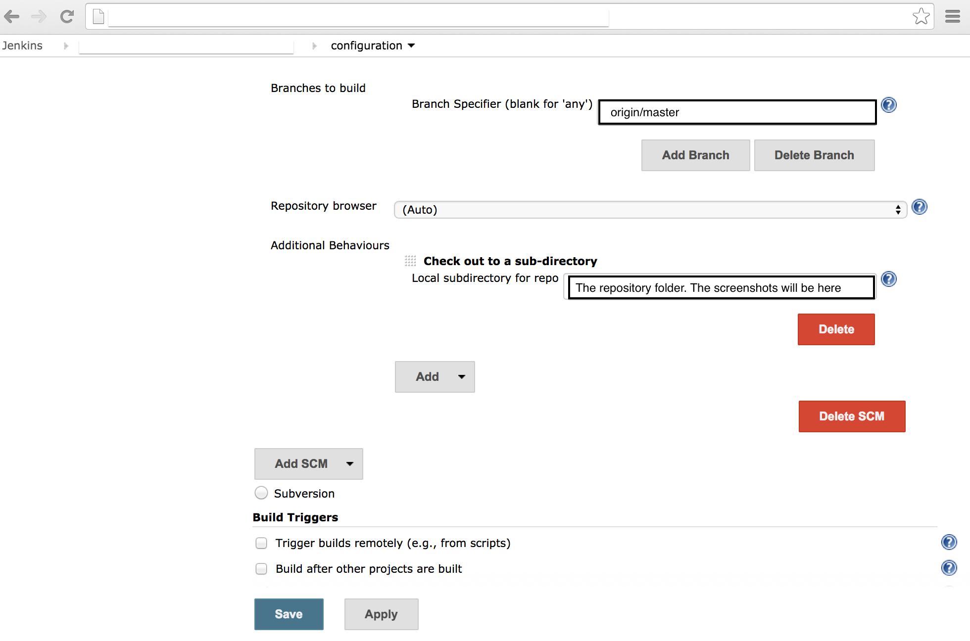 (That where you put your steps and features, again this is a example, maybe your calabash automation project is inside of the same repository of the app project, so you won’t need to add this second SCM)