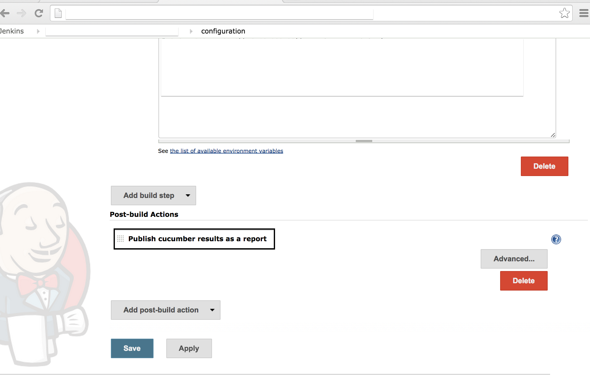 Seventh – In this step you can install a plugin of Cucumber and see the report with graphs and everything. Link of plugin: https://github.com/masterthought/jenkins-cucumber-jvm-reports-plugin-java