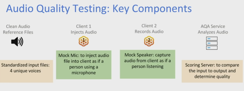 Here you have all the key components: You have the audio data, which will be injected into the first client. Then, you have the second client which will capture the audio from the first client and compare the sound quality between the input and the output.