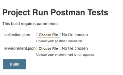 You will set it up to be able to upload the collection as a parameter. When you do this with your own projects, you should commit the Postman collection into whatever repository you’re using and pull directly from that repository to build by selecting “this project is parametrized” and then choosing “Add Parameter” with a “File Parameter.”