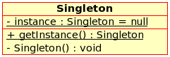 public class Singleton { private static final Singleton INSTANCE = new Singleton(); private Singleton() {} public static Singleton getInstance() { return INSTANCE; } }